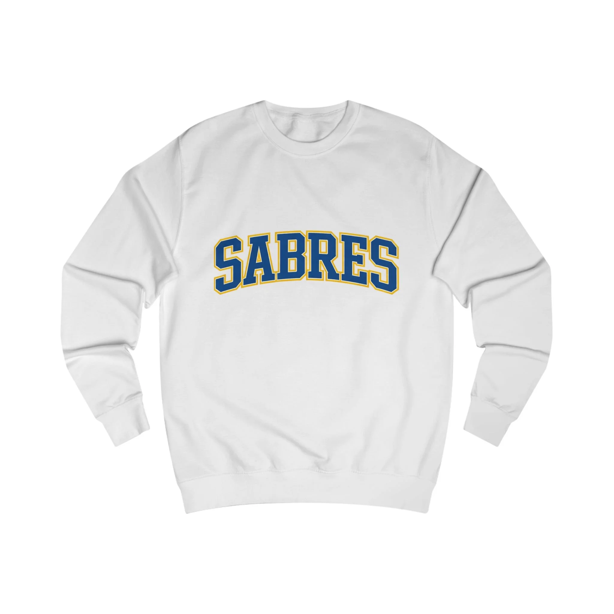 A roomy, vintage-inspired sweatshirt that feels like a cozy hometown Friday night. The soft, medium-heavy fabric drapes with a relaxed, stylish fit while the bold collegiate “SABRES” arch across the chest gives off classic team-spirit energy. Wear it to board a late bus to the game, grab coffee after morning practice, or layer over a tee for crisp evenings. The ribbed collar and reinforced necktape keep the silhouette steady wash after wash, and the side seams help it hold shape through seasons of wear. This sweatshirt settles into your rotation quickly — familiar, warm, and quietly confident.
